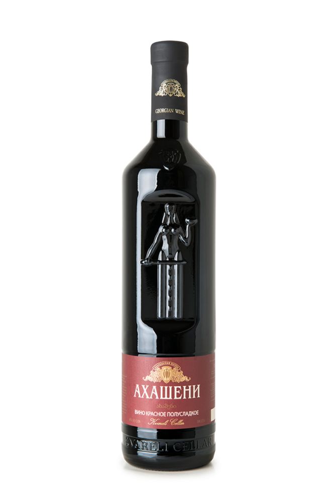 Ахашени, изготовленно из винограда сорта Саперави, который выращивают на виноградниках в микрозоне Ахашени в регионе Кахетии, Вино рубинового цвета с лиловым оттенком, с ароматом раздавленных ежевики, чернослива, джема и пряными тонами. Вино комплексное, с тонами клубники, ежевики и чернослива, прекрасно гармонирует с мягкими танинами и оставляет долгое послевкусие.